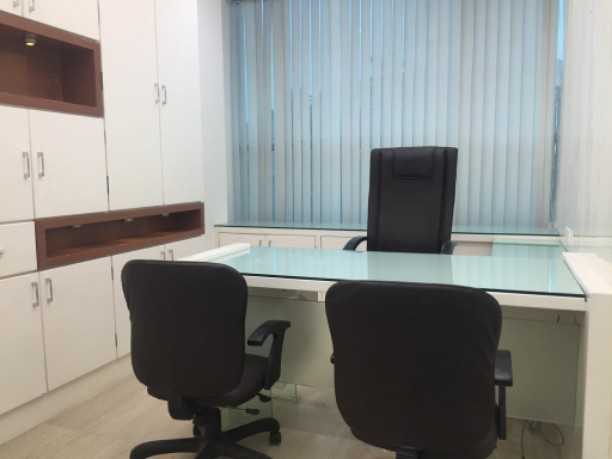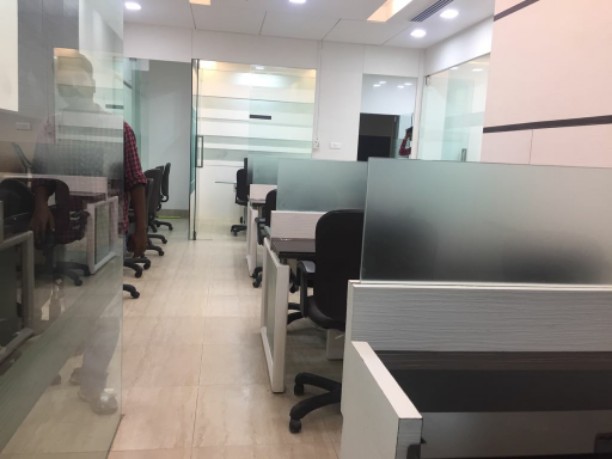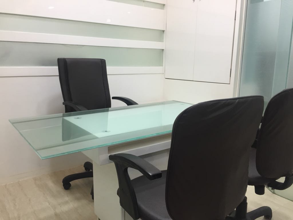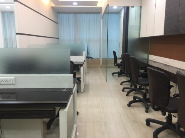 Fully furnished office with 30 work stations, reception with sofa & table, 1 meeting room, 2 manager cabin, 1 director cabin, 24 chairs, centralized AC, 2 washroom, and pantry. A spacious 1104 Sq.ft. office for rent at Andheri East. Office include a car parking.