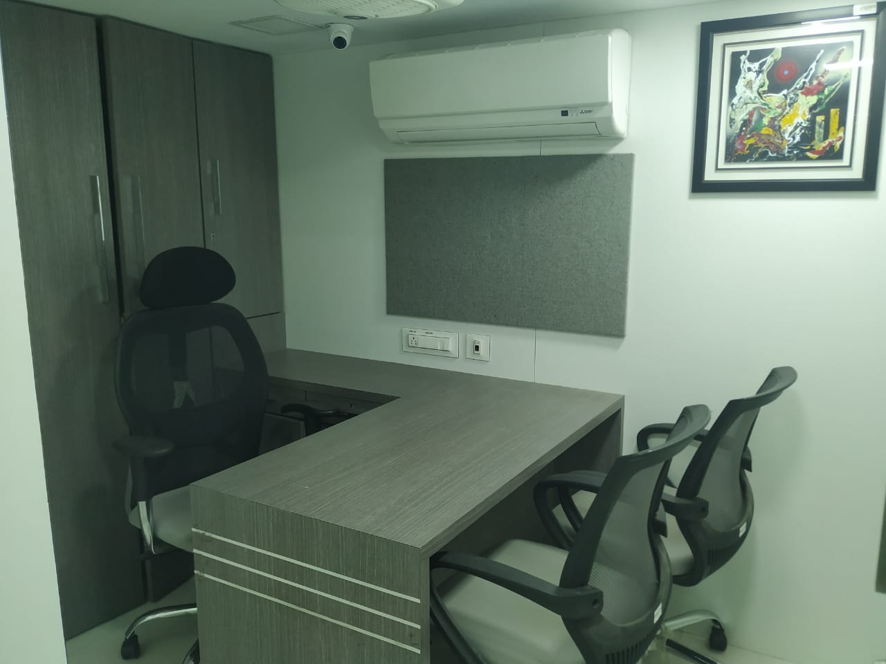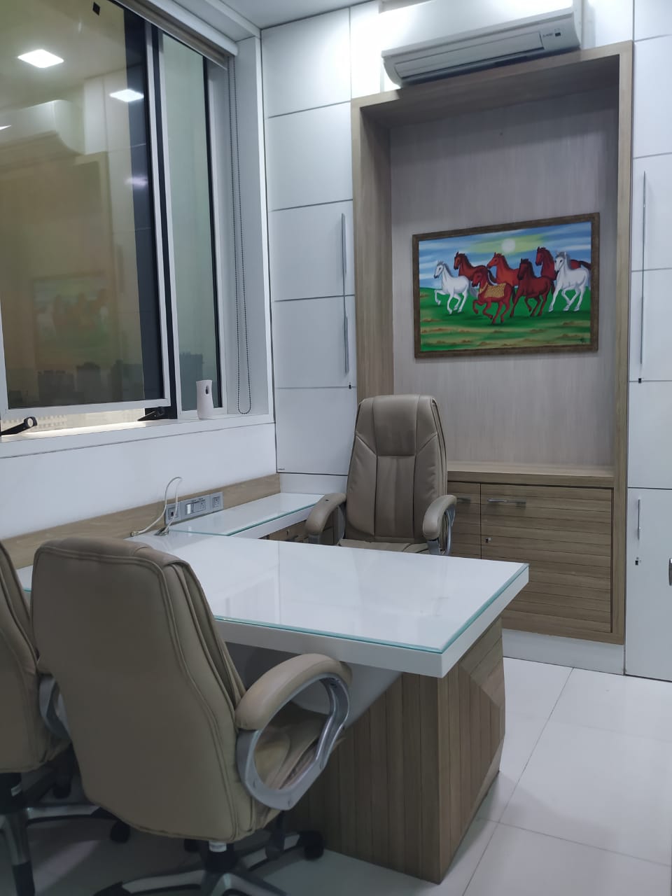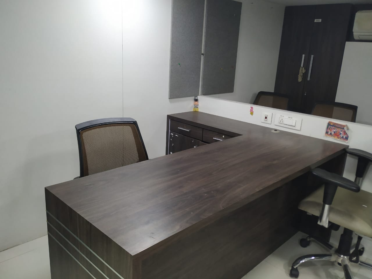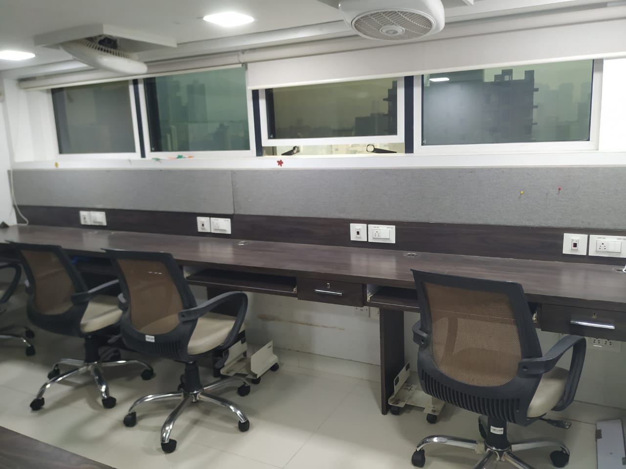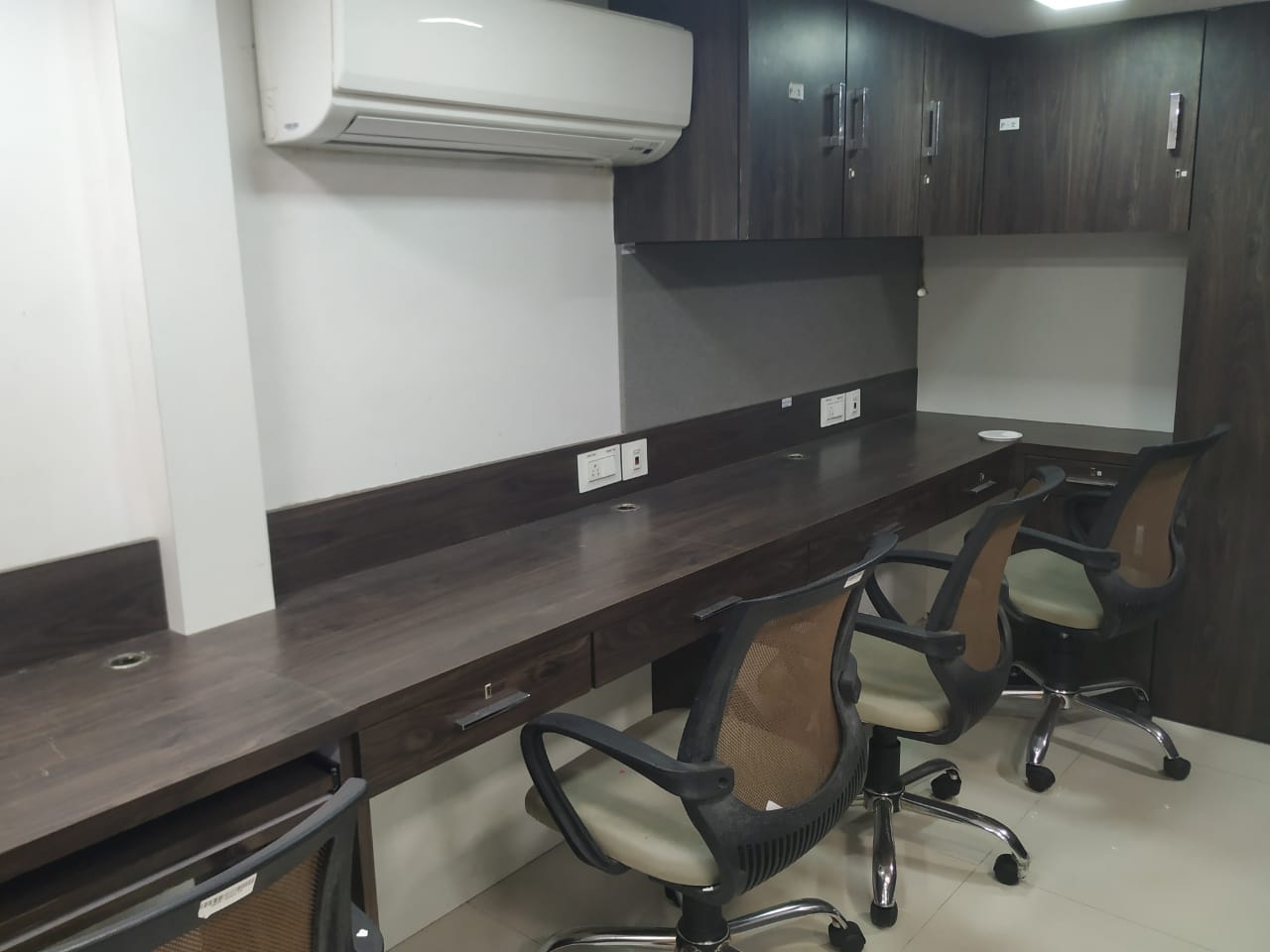 A spacious 1600 Sq.ft. office for rent at Malad West. Fully furnished office with reception, 28 work station, 5 cabin, 2 washroom and pantry. Office include mezzanine.