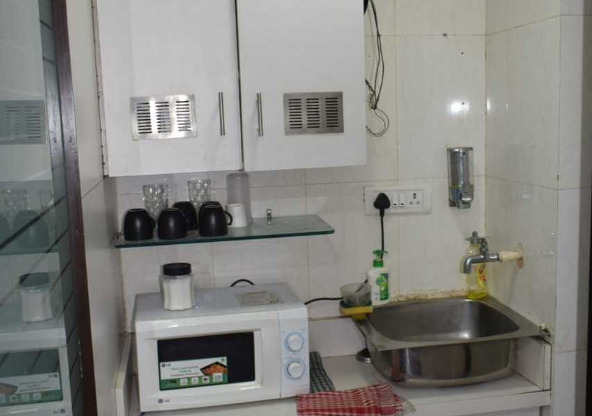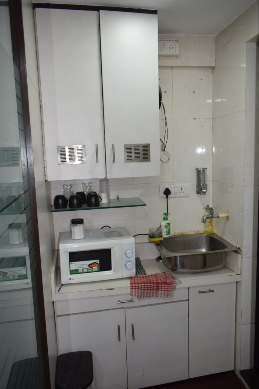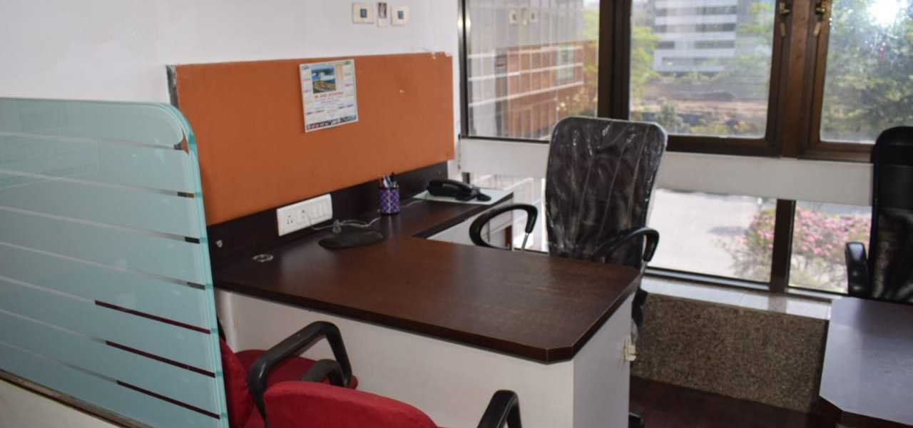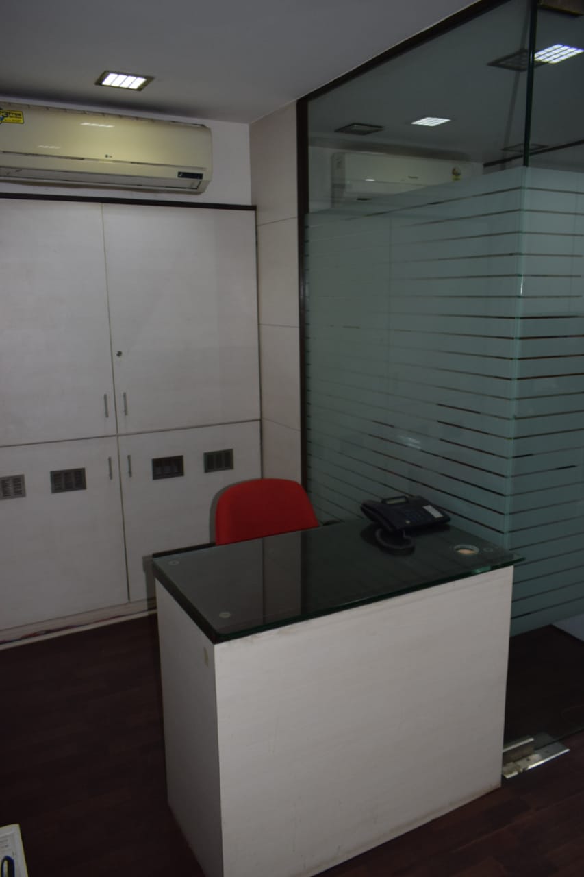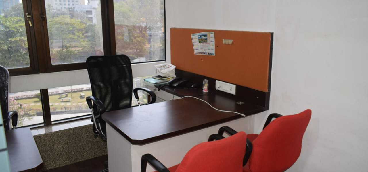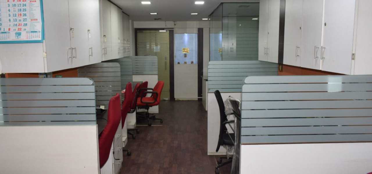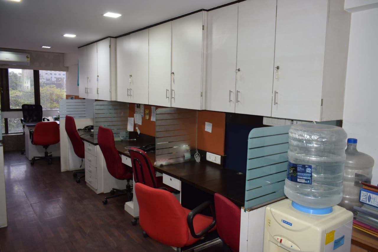 Fully furnished office with reception, 10 work station, cabin, washroom, and pantry. A spacious 400 Sq.ft. office for rent at Andheri East. Office include a car parking.