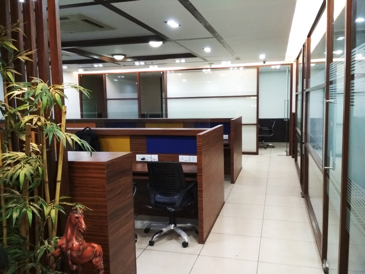 Fully furnished office with 50 work station, 5 cabin, 1 MD cabin with attached washroom, conference room, reception, washrooms and guest lounge. A spacious 5000 Sq.ft. office for rent at Andheri East. Office include 2 car parking.