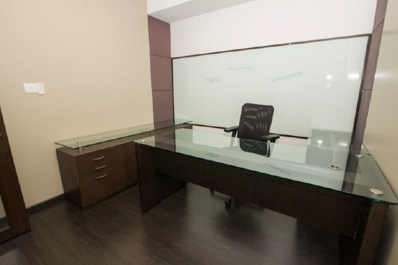 First office is fully furnished with facilities such as 8 cabins, 23 work stations, 2 conference room of 20 seater and 10 seater, pantry, cafeteria, rest room, server room, chairs, UPS back up and 5 parking. 6 Month Deposit.
